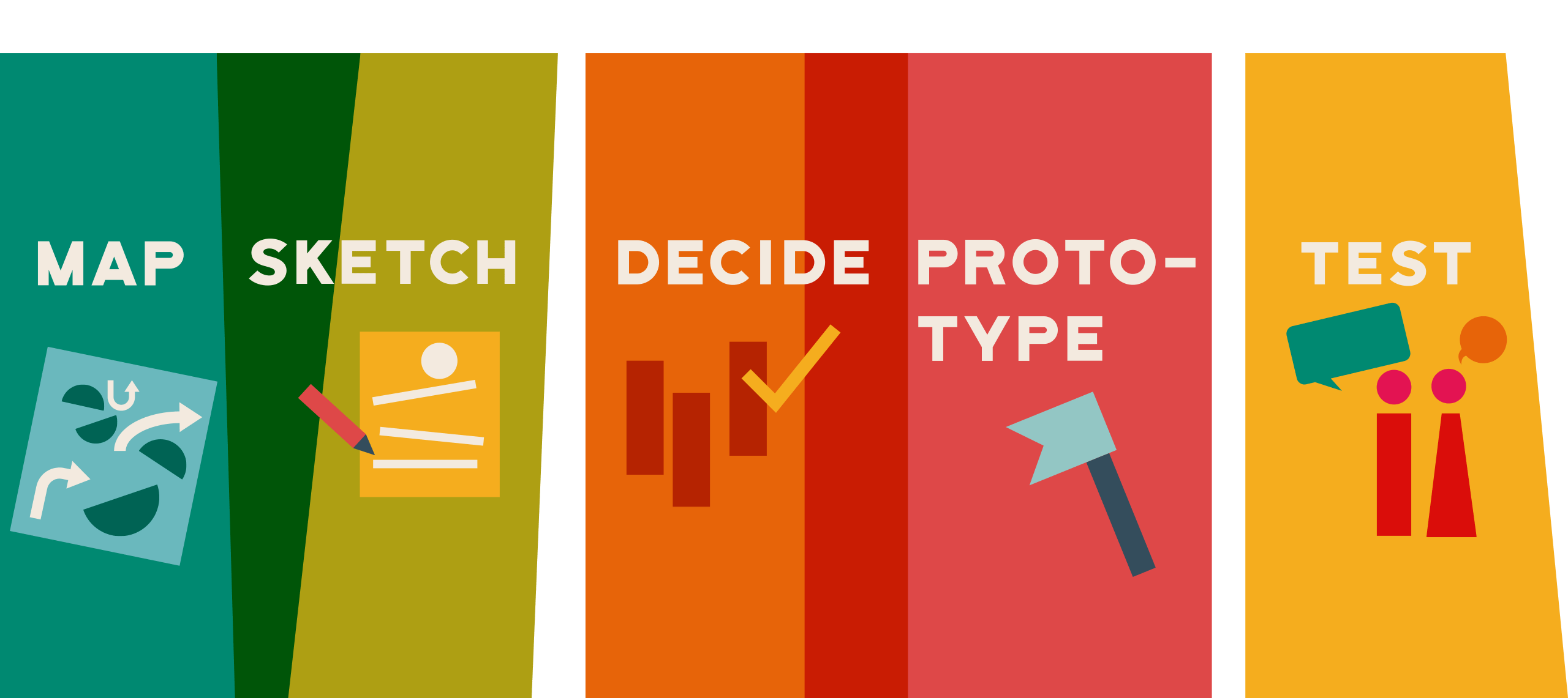 Created in the Google Ventures, facilitated by our sprint team. Full-blown 5-day Design Sprint – from mapping the challenge, and sketching ideas, to prototyping and testing the solutions with carefully chosen small target group sample.