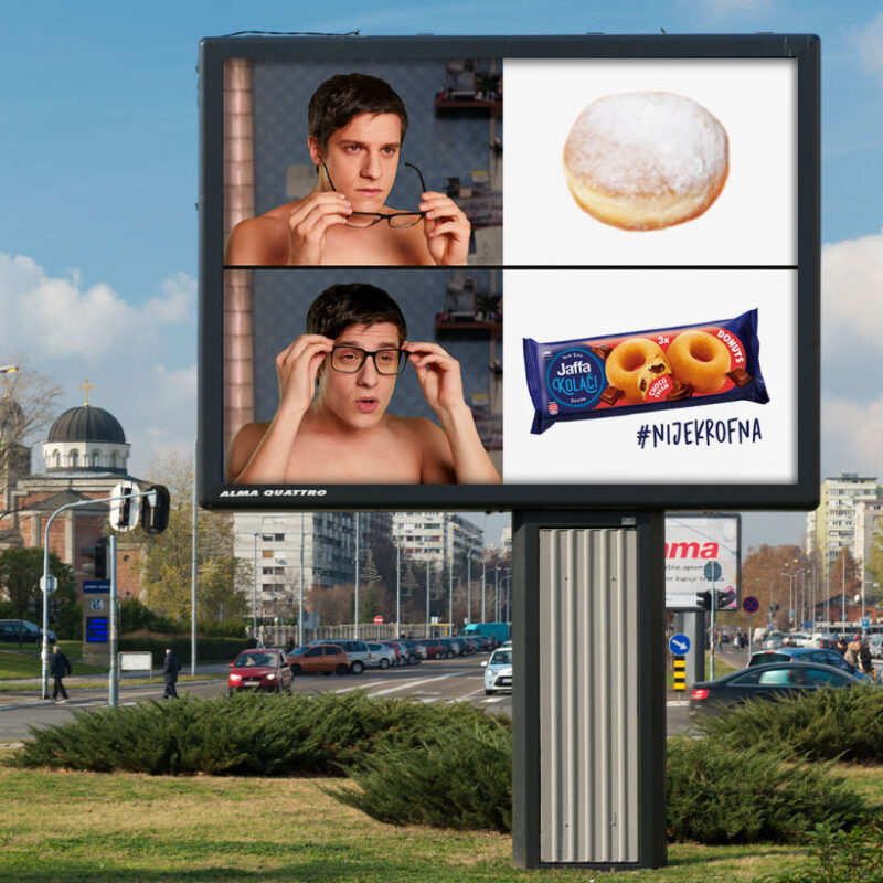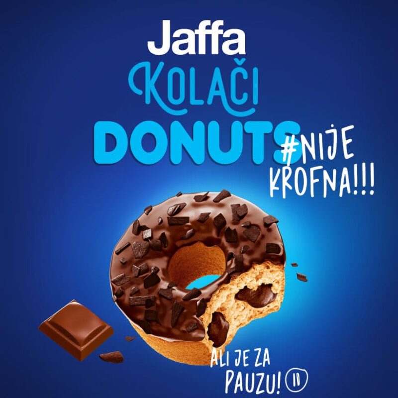 Jaffa approached us with a request to craft the campaign for launching the new extension of the brand “Jaffa kolači”, developed exclusively for the Gen Z. The product was named “Donuts” but due to legal restrictions we could not use the Serbian word for donuts. Traditionally donuts are associated with the homemade fluffy dessert that does not have the hole in the dough, like the new Jaffa Donut product.